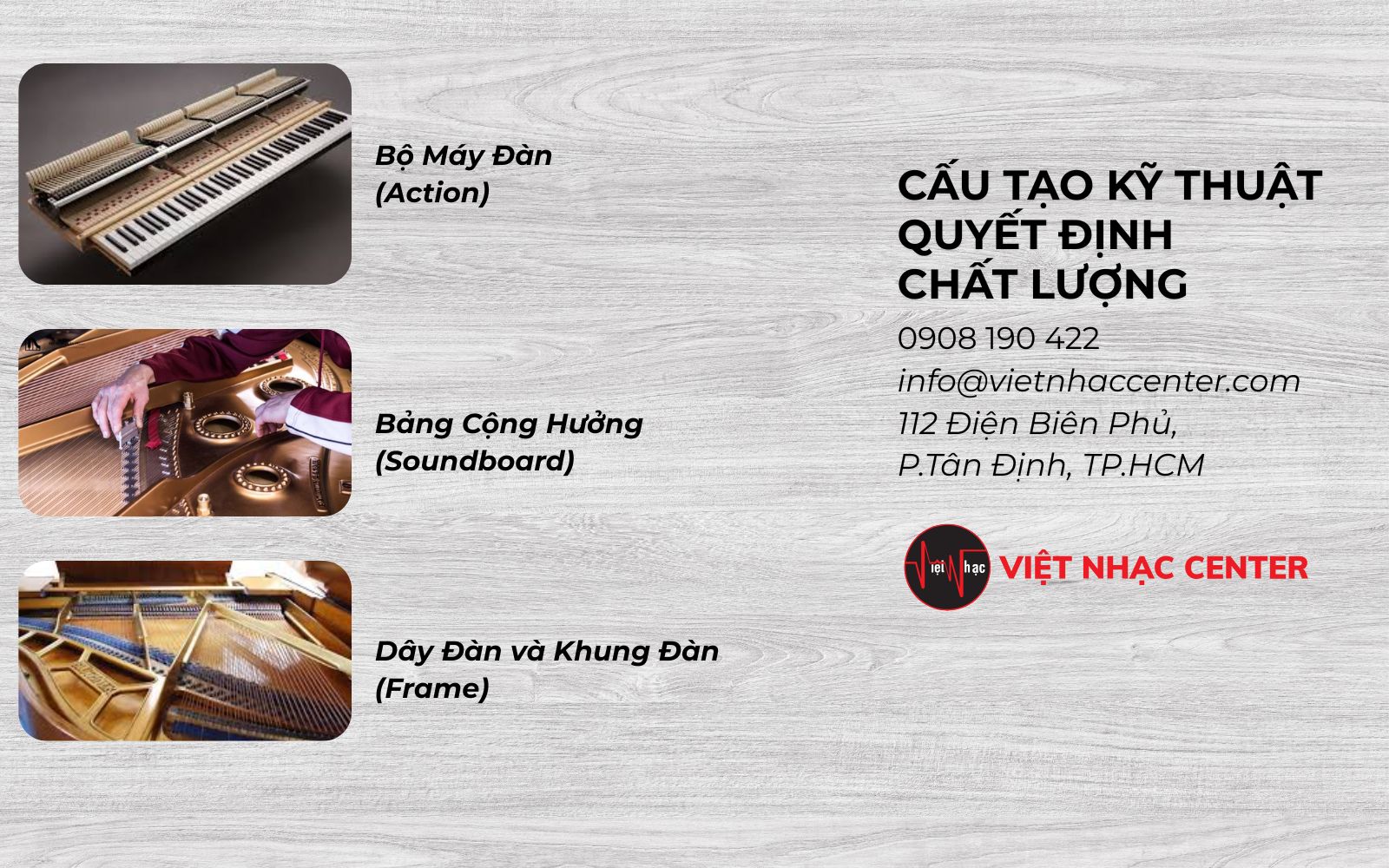 - Dây đàn: Thường là thép carbon cao cấp. Các nốt trầm được quấn thêm dây đồng để tăng khối lượng, giúp âm thanh dày và sâu hơn.