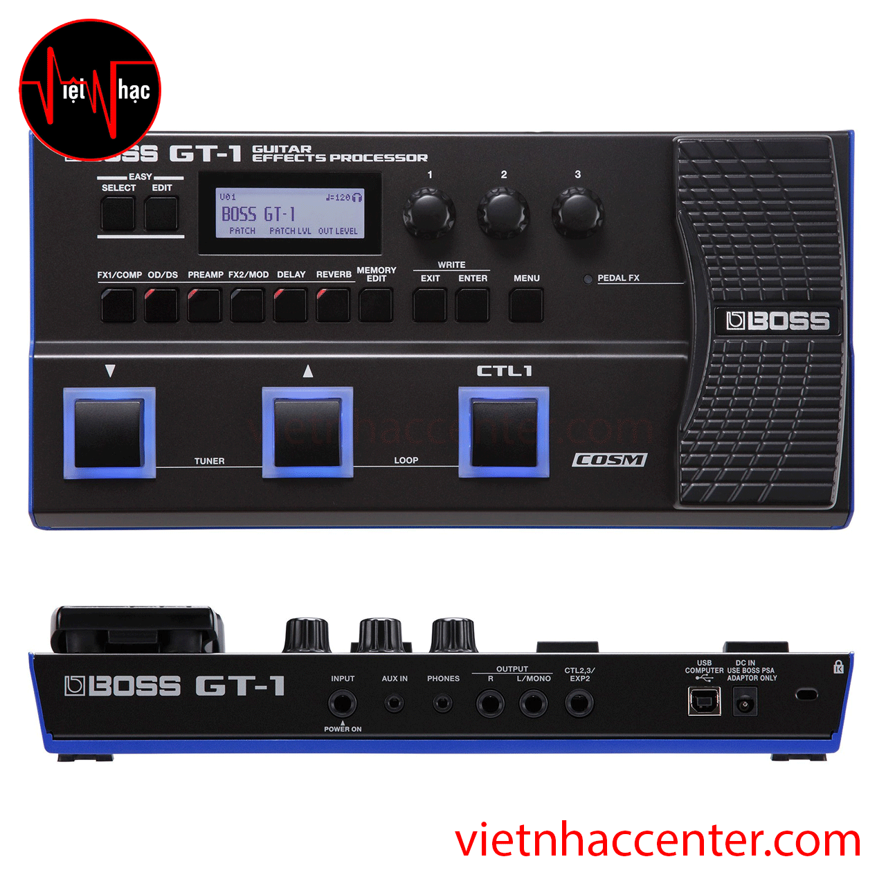 Ba footswitches của GT1 được thiết kế thông minh để mang đến khả năng lựa chọn bản vá, truy cập bộ chỉnh, điều khiển looper, v.v. với diện tích tối thiểu. Công tắc CTL1 chuyên dụng có thể được gán tự do cho các chức năng như nhịp độ nhấn, bật/tắt hiệu ứng và nhiều chức năng khác, trong khi bàn đạp biểu cảm và công tắc ngón chân có thể được gán cho các thông số âm lượng, wah và các hiệu ứng khác nhau. Nếu bạn muốn kiểm soát nhiều hơn, thậm chí còn có giắc cắm để kết nối với hai bàn đạp chân bên ngoài hoặc bàn đạp biểu cảm. Và ngoài việc cung cấp quyền truy cập vào BOSS Tone Central và BOSS Tone Studio, giắc USB của GT-1 cho phép bạn ghi âm bằng DAW yêu thích của mình.
